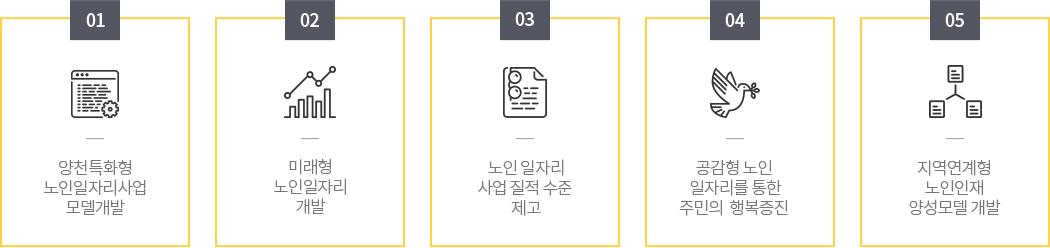 | 운영목적 | 노인의 생애경험 및 지식을 활용할 수 있는 다양한 노인적합형 사회활동을 개발하고 환경을 조성하여 지역사회에서 건강하고 생산적인 노인사회활동을 만들어가는 노인일자리지원기관의 운영 | |||||||||||||||||||||||||||||||||||||||||||||||||||||