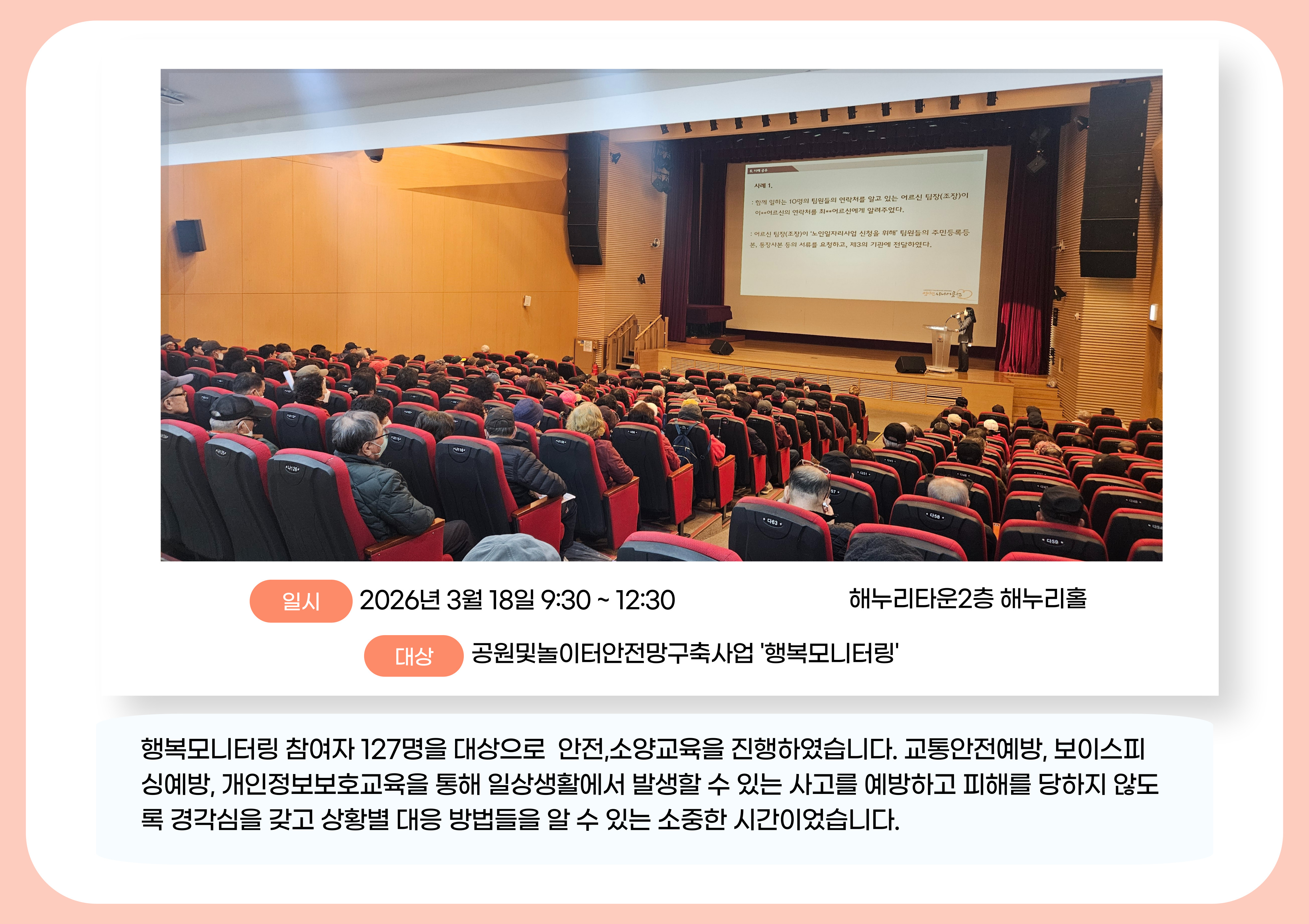 [행복모니터링]참여자 안전,소양교육